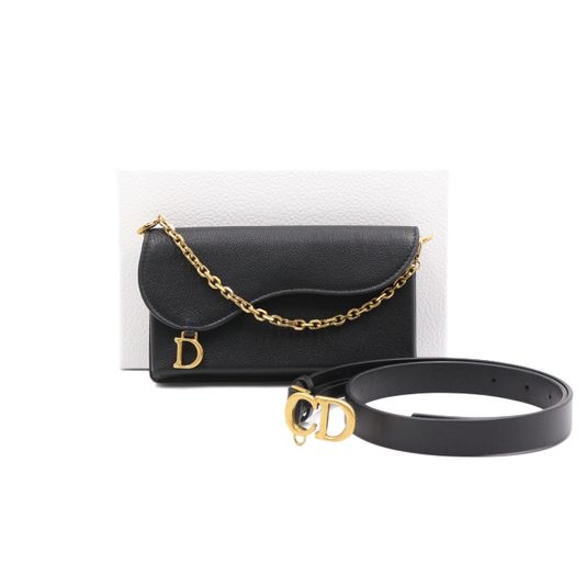 Dior(디올) B0454CWGI_M900 블랙 그레인 레더 새들 체인클러치 겸 벨트백aa49063