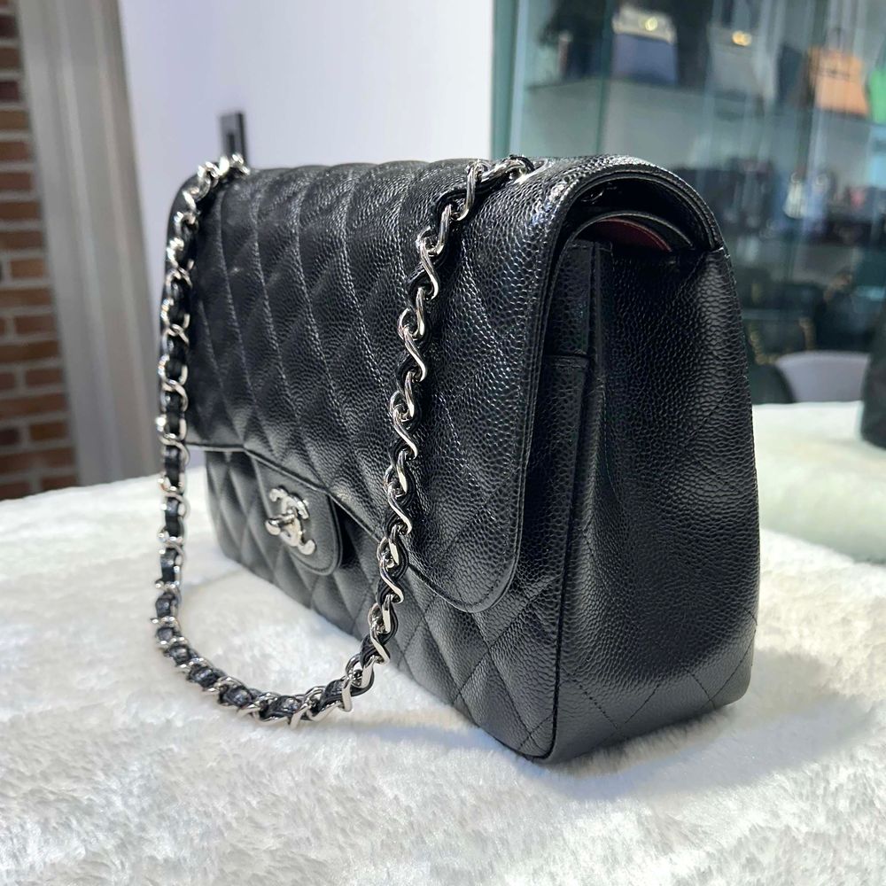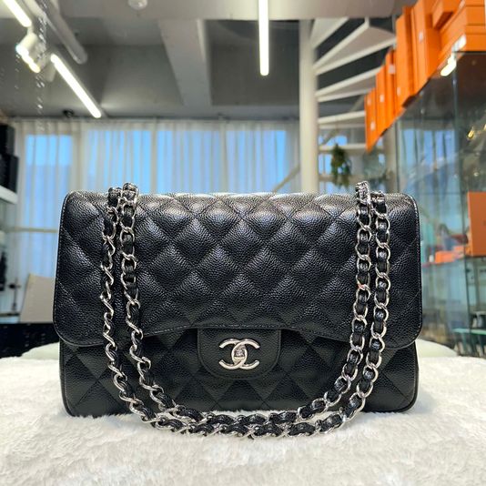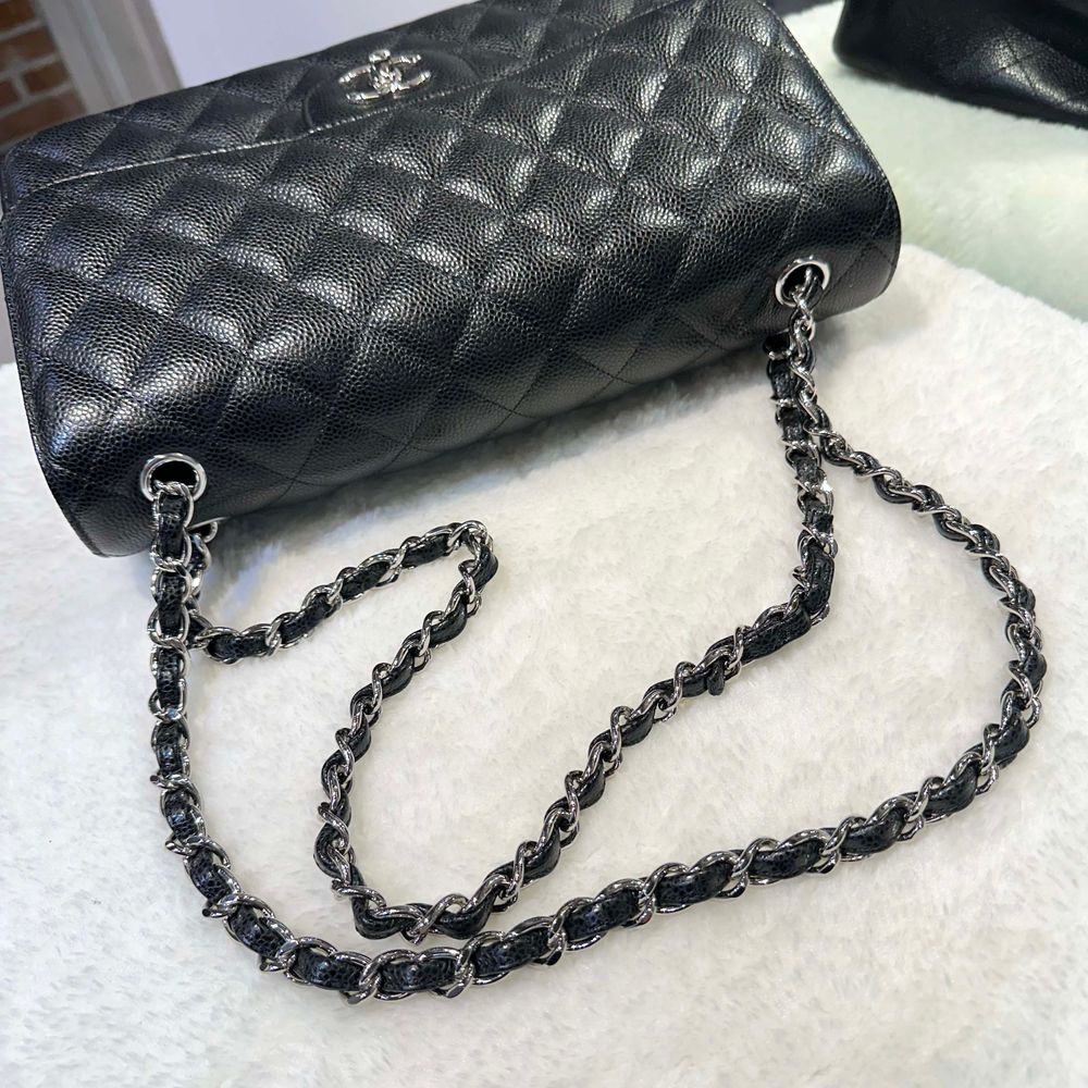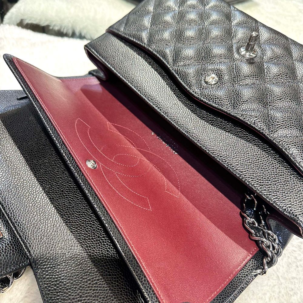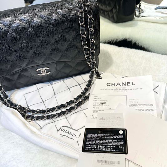 샤넬 클래식 캐비어 플랩백 점보 블랙/은장 a58600 28번대-H102801